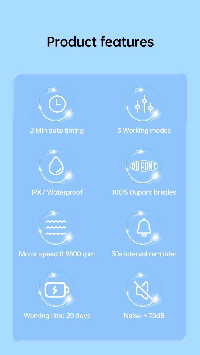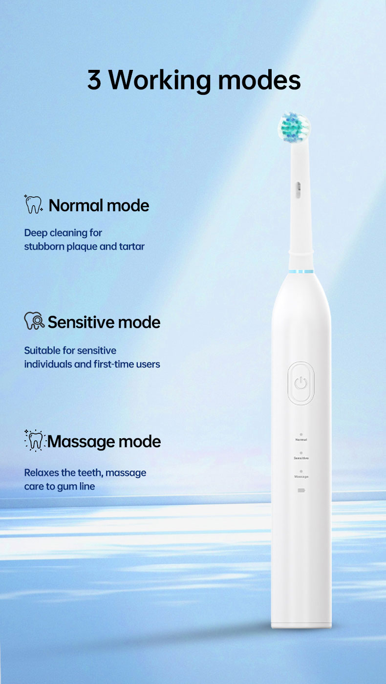 【3 Modes for Various Oral Care Needs】3 high-performance modes are designed to meet all your oral care needs and help maintain a healthy mouth. Whitening, Cleaning, Sensitive, Massage. Whitening mode 100% teeth stain removing and tartar dislodging on teeth. Clean mode goes deep into the inter dental, cleans the dirt hidden in the periodontal. While massage mode offers a gentle massage of gums