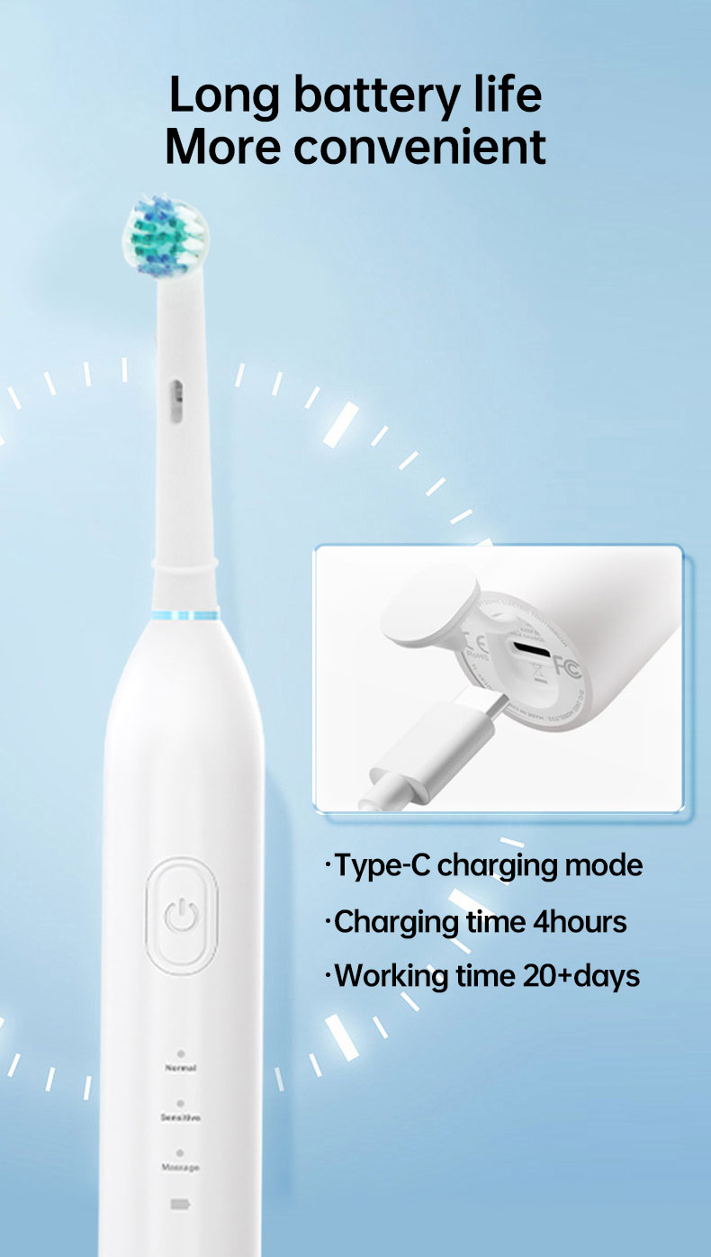 【EXTRA Replacement Brush Heads Last for 2 Years 】The rotating electric toothbrush comes with extra DuPont brush heads, which you can use for 2 years. You can share a toothbrush, and different color collars can be used to distinguish the toothbrush heads of different family members. You will know it's time to change the brush head