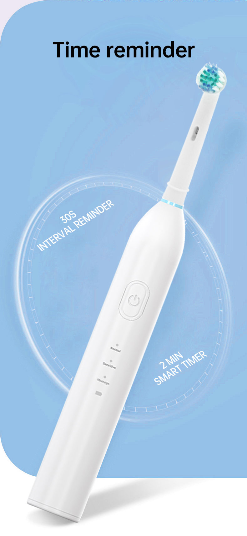 5:Three working modes.Normal/Sensitive/Massage Rotating speed:6000-8000 times/min