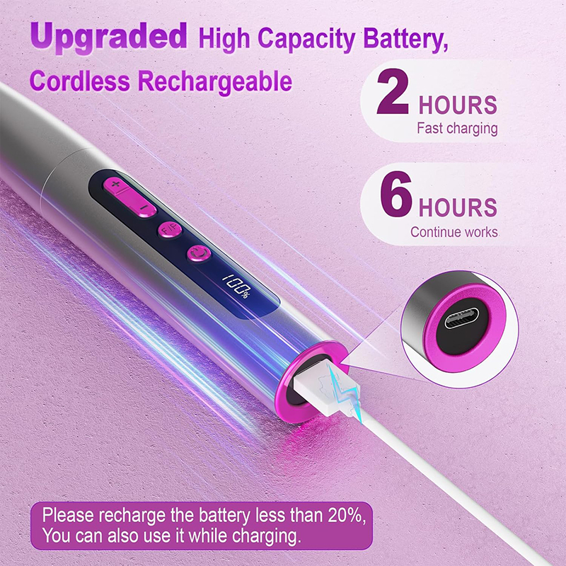 elektrikli çivi matkabı Yükseltilmiş Yüksek Kapasiteli Pil, 2 saat Hızlı şarj ve 6 saat çalışmaya devam eder. Elektrikli Tırnak törpüsü, USB güç adaptörünüz, dizüstü bilgisayarınız, mobil güç kaynağınız vb. için uygundur. Kablosuz tırnak matkabının gücü 'den azsa şarj sırasında da kullanabilirsiniz.
