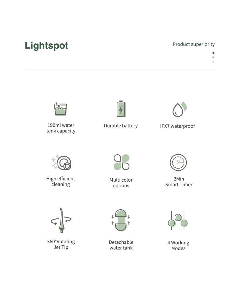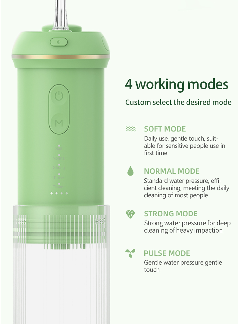 Güçlü Basınçla Derin Temizlik: Su diş ipi, 30-90 Psi arasında bir basınç aralığı ve dakikada 1400-1800 kez nabız hızı ile 4 mod sunmak için en son nabız tekniğini benimser, diş gerginliğinin ,99'unu temizleyen yüksek yoğunluklu su sunar, özellikle periodontitis ve diş telleri için tasarlanmıştır.