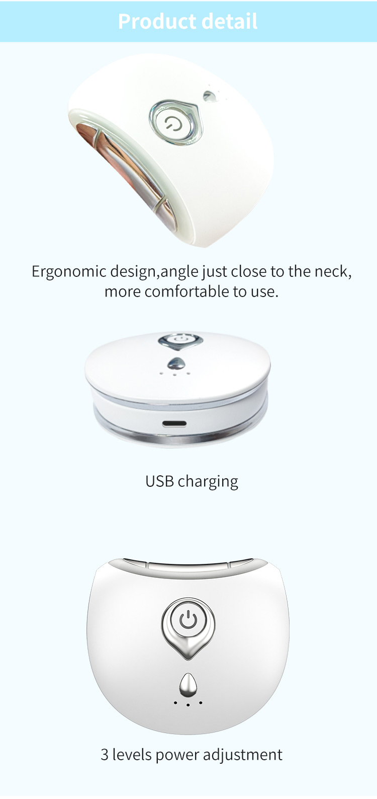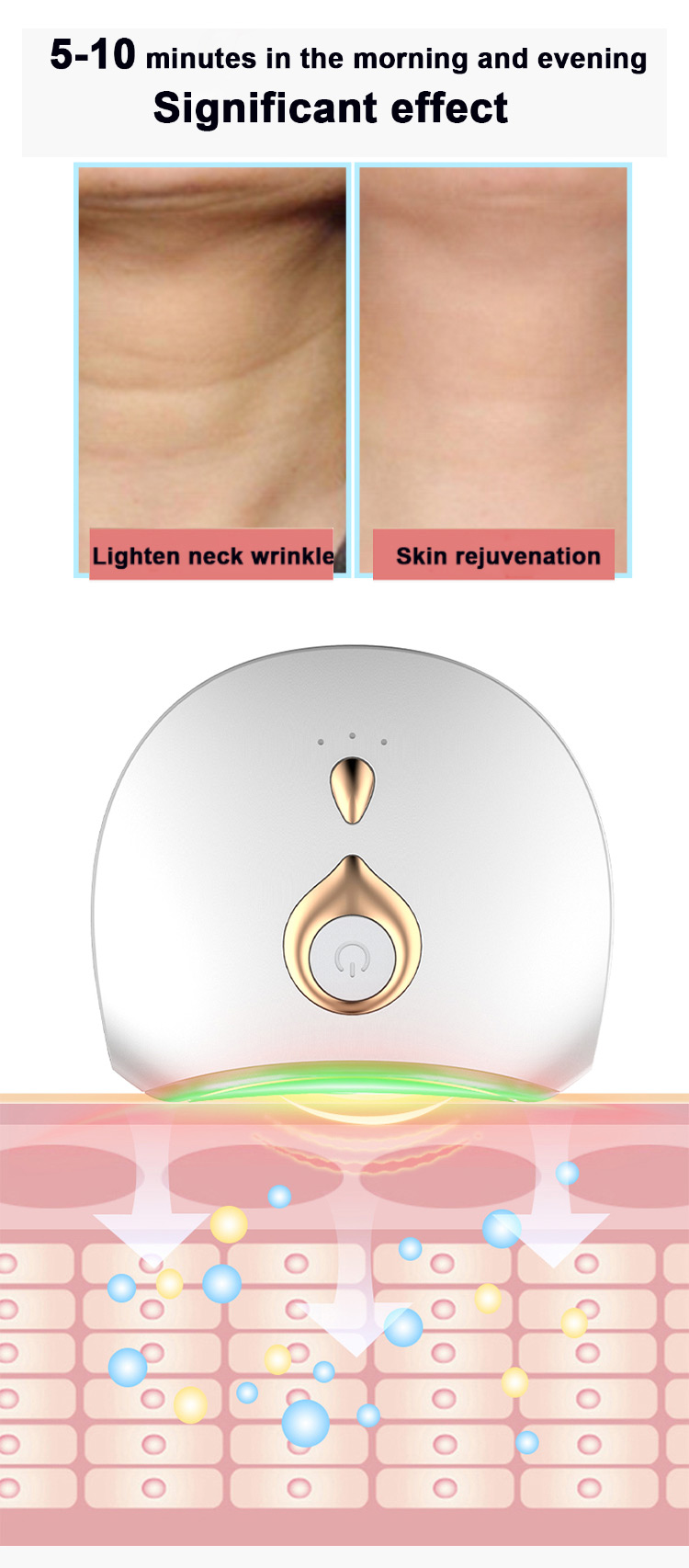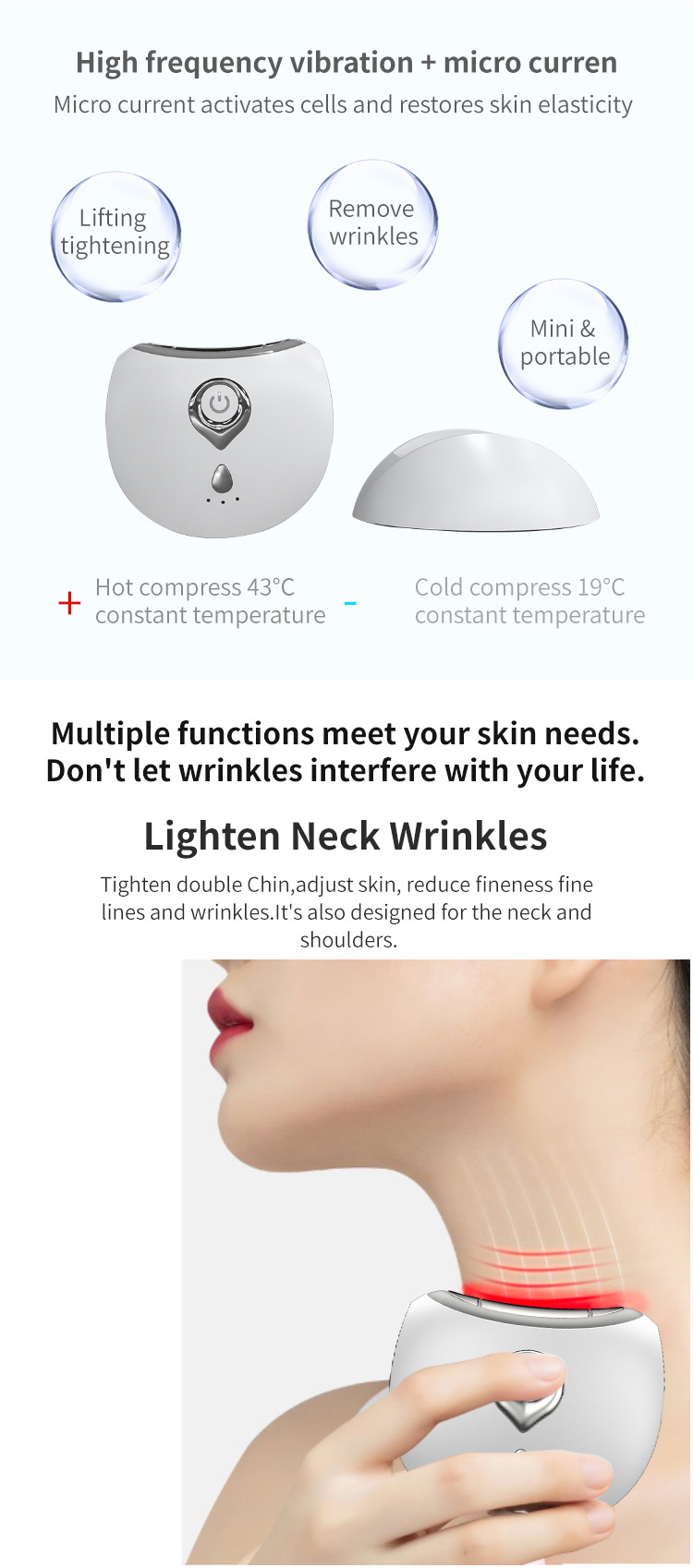 6. Kompakt boyut, her zaman taşımaya ve kullanmaya uygun, kolay kullanım Yüksek frekanslı titreşim + mikro akım, Mikro akım hücreleri aktive eder ve cildin elastikiyetini geri kazandırır.