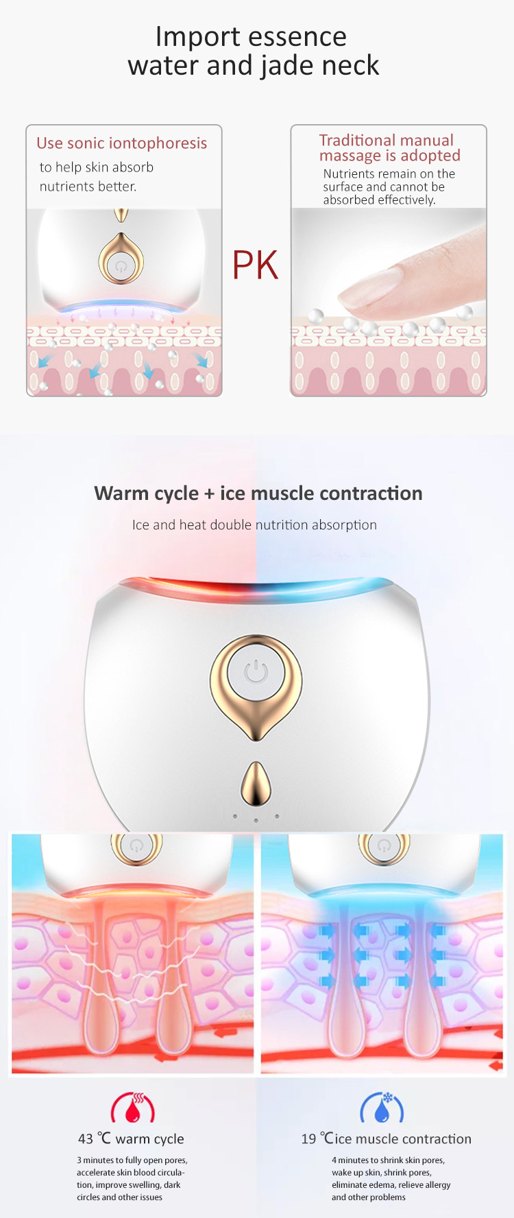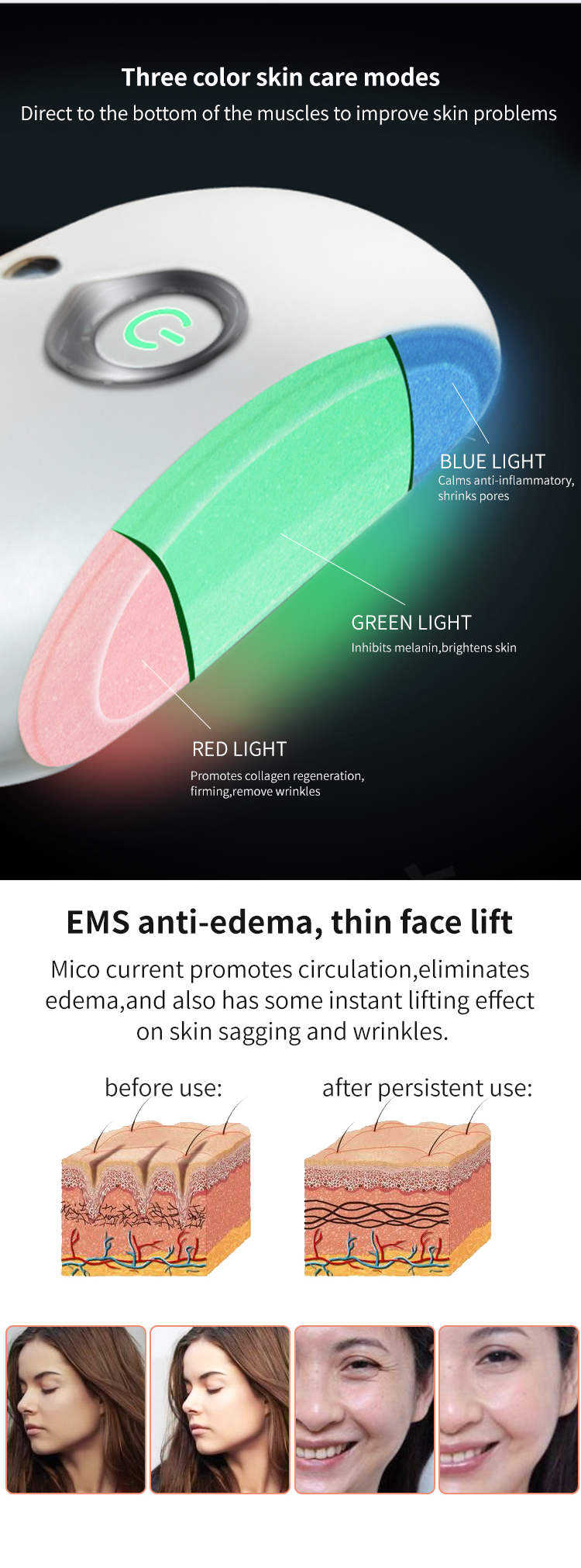 Üç renkli cilt bakım modu, Cilt problemlerini iyileştirmek için doğrudan kasların altına
